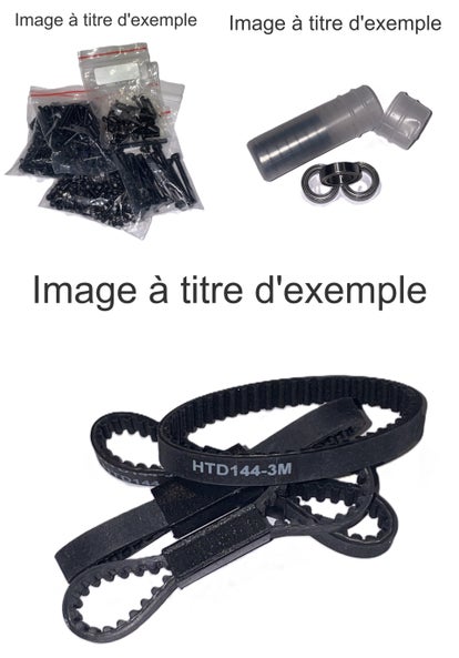 4 Courroie de distribution HTD3M (High Torque Drive) avec pas de 144 mm, largeur de 6 mm et hauteur de 2,4 mm. Forme incurvée pour une meilleure transmission de puissance et un risque de glissement réduit.